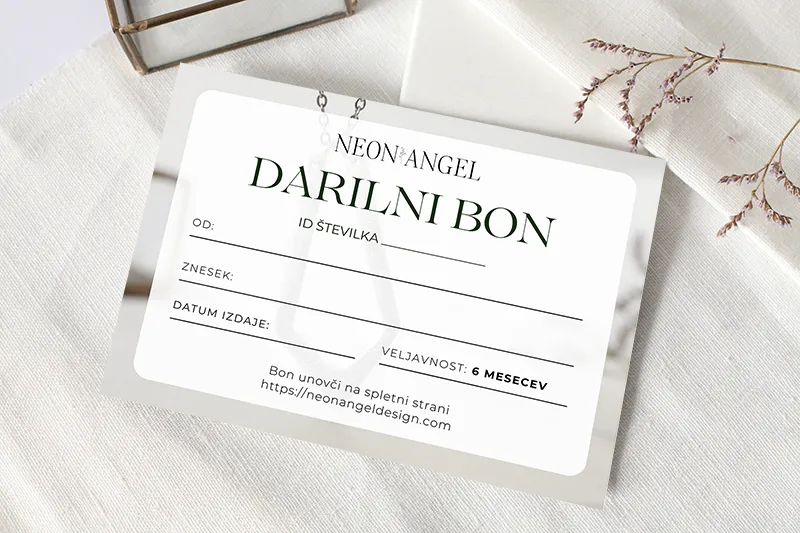 - Darilni bon lahko uporabiš z uporabo edinstvene kode kupona – ID številke, ki je navedena na njemu. To kodo shrani na varnem in je ne deli z ostalimi, razen z osebo, katero bi želela obdarovati, saj ne morem biti odgovorna za izgubo ali zlorabo kode.