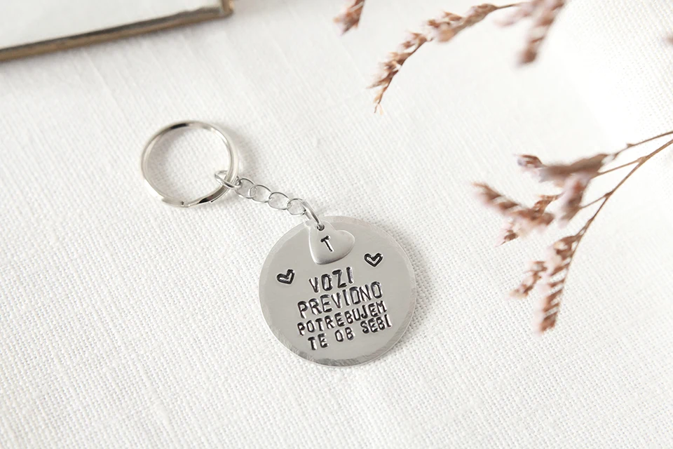 V ponudbi najdeš tudi obesek za ključe z enakim napisom na pravokotni ploščici. Ogledaš si ga lahko TUKAJ.