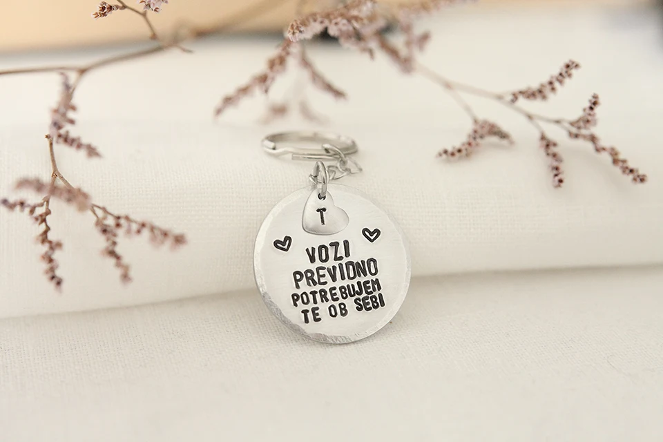 Včasih res ne vemo kaj bi podarili ljubljeni osebi, da bi ji z izbranim darilom pokazali koliko nam pomeni. Tukaj ne bo dvoma. Tale obesek za ključe mu bo zagotovo polepšal dan. In z dodatkom personaliziranega srčka s tvojo začetnico bo obesek res postal neprecenljivo darilo.