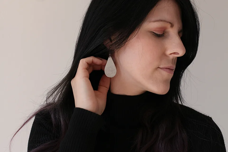 *Vsak par uhanov je v celoti narejen ročno. Površina uhančka je potolčena s posebnim kladivom, s katerim dobim značilen vzorec, ki pa se lahko rahlo razlikuje od tega na fotografiji. Vendar le malenkost, saj se vedno potrudim, da se čimbolj približam izgledu uhana, ki ga vidiš na fotografiji.